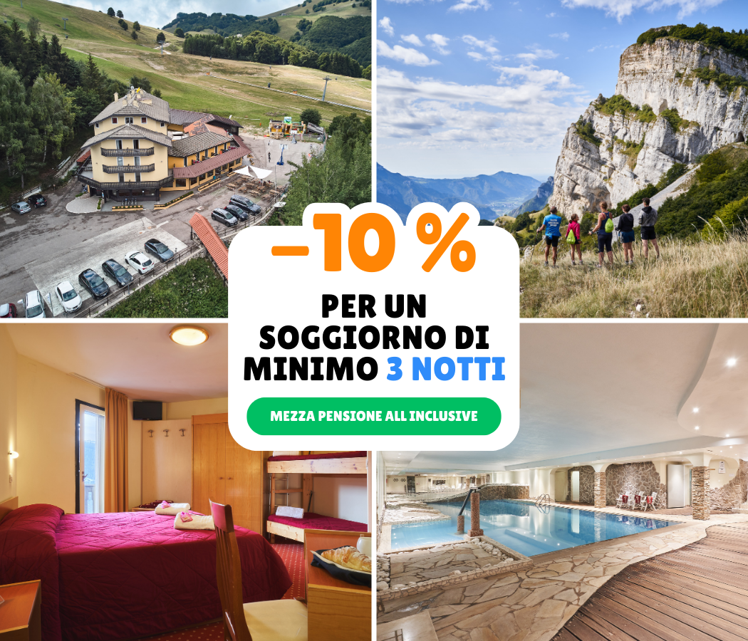 IscrivitiOfferta sconto del 10% prenotando entro il 31 Luglio un soggiorno minimo di 3 notti tra il 10 Agosto e il 7 Settembre fino a 4 persone in camera